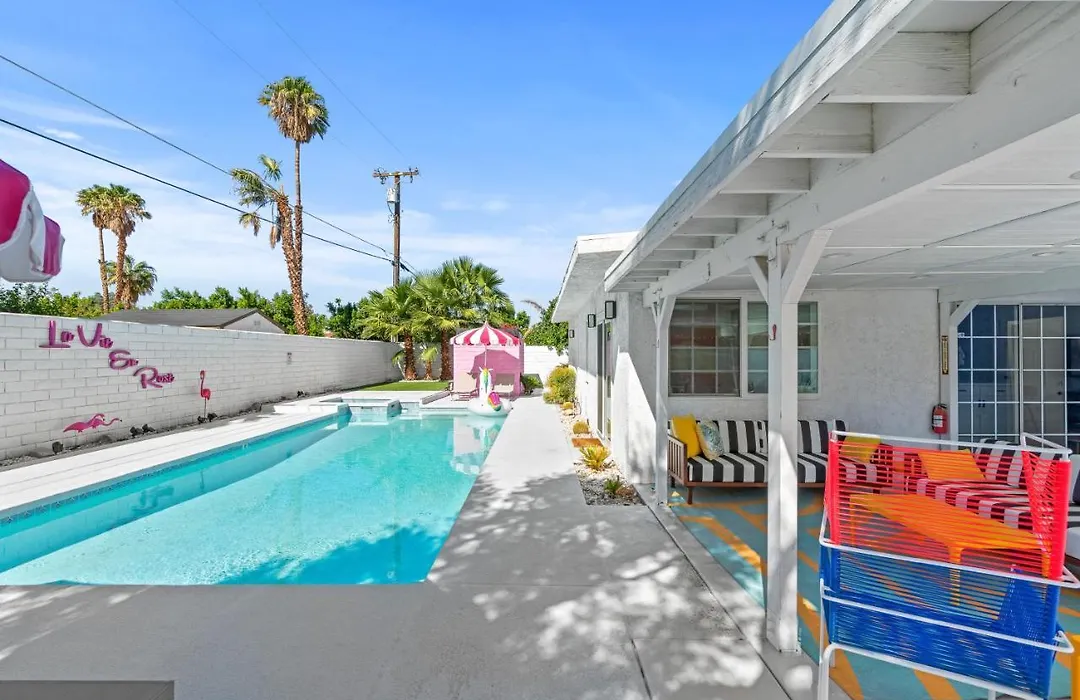 Die La Vie En Rose Permit# 3901 verfügt über eine sonnige Terrasse mit Blick auf die Berge und ist 10 Autominuten vom Flughafen Palm Springs entfernt gelegen. Diese Villa bietet einen Swimmingpool sowie Wandern, Reiten und Bowling für aktive Gäste.